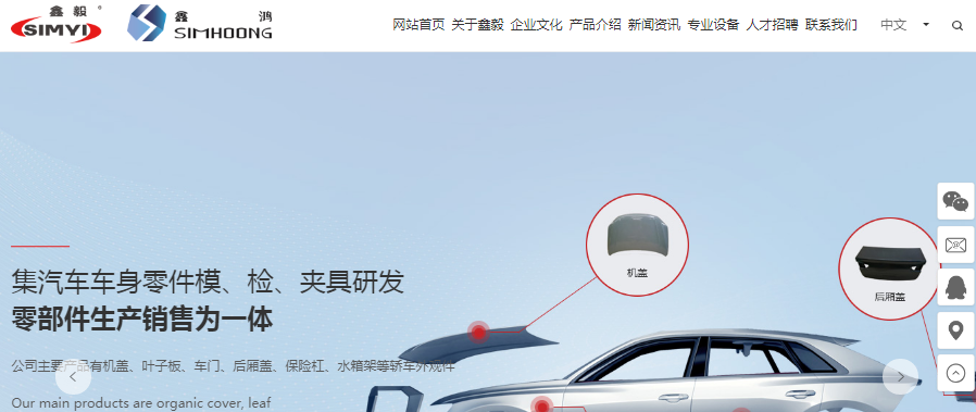 上海鑫毅交通工业有限公司是专业从事汽车车身零件模、检、夹具研发和零部件生产销售为一体的综合性企业。总公司下设模具研发、制造以及国内外销售等部门。鑫鸿交通工业(安徽)有限公司是我司零部件的生产基地和仓储物流中心。企业占地总面积38.5万平方米,现有员工1300余人。公司从1996年8月正式投产至今已形成一套完整的生产管理体系,全面推行ISO9001、QS9000、TS16949国际质量体系标准和CAPA(美国合格汽车零部件协会)认证。公司在注重品牌推广的同时更注重品牌的延伸,鑫毅钣金件和鑫鸿塑胶件将在2010年全面推向市场。
